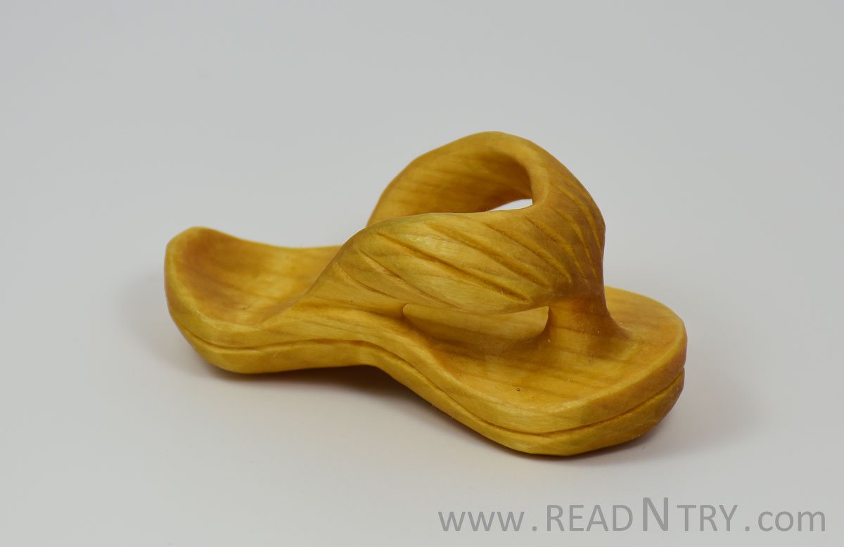 The flip-flop is about 3″ (7 cm) long. It attracts a lot of attention from the public during wood carving shows.