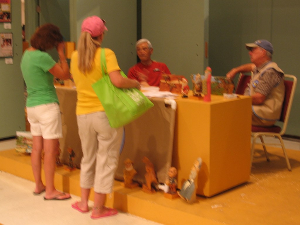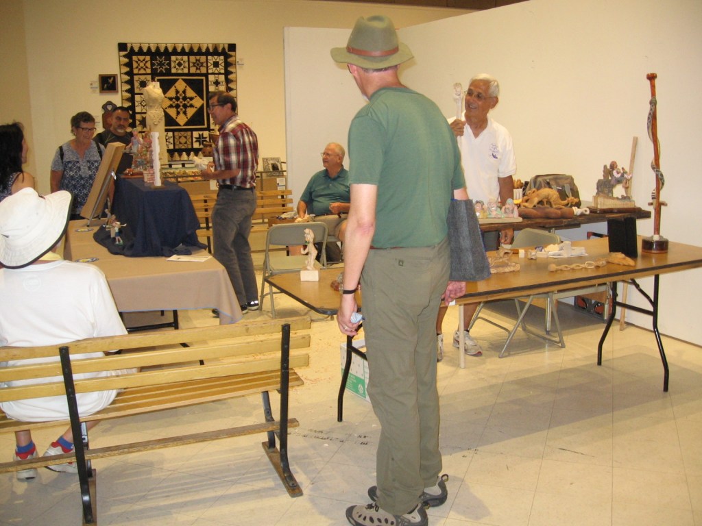 Eleven of our club members demonstrated wood carving and chatted with visitors to the demonstration area inside the Creative Arts Building on Wednesday July 27 and Thursday July 28. The visitors expressed a lot of interest in woodcarving and we were able to put in a lot of “plugs” for our annual club show in May. Altogether we passed out approximately 60 of Kath Gervais’ threefold brochure which provides information about our club and our show and also includes a membership application.
