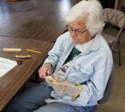 At the club meetings Shirley would be at one table and all the women aggregated around her. Bob Travis was at another table with the men. This was more than just gender separation. Many of the women were beginners and Shirley helped them get started. She had mentored some of them at her shop. Most of the men were more experienced carvers, and they worked on more advanced techniques. But, it didn’t take long for the women to catch up, and they became some of the club’s best carvers.