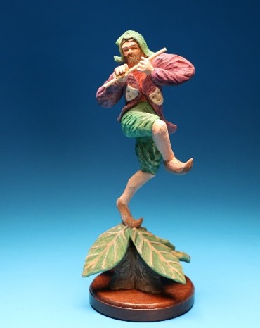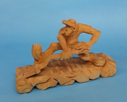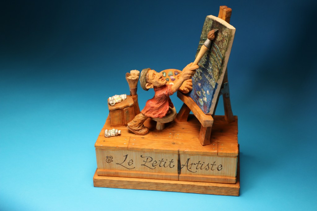 Andy Hiroshima’s carvings are always interesting and engaging. He is able to show action and movement in static basswood caricatures.