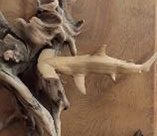 Andy’s woodcarving history began for real in 1975. While strolling through the shops in Mendocino he spotted a sculpture of a barn owl that he admired. He decided he would try some sculpturing in wood. His tools were a coping saw a hack saw and sandpaper. His first carving was a hammerhead shark in white oak (see picture). He also did a porpoise in pine and a great white shark red oak. Each carving took months to do. Andy’s first experience with bass wood was to carve a ball and chain. At Woodcraft he met Jim Hansen who introduced him to CWA and he joined in November 2005. Joe You invited him over to see his caricature carvings and Andy was hooked. He started carving caricatures and has not looked back. CWA member Judy Coffee taught him how to make knives using blades from straight razors. He especially likes making handles from a variety of woods, some more exotic than others. The resulting knife is a thing of beauty as well as a functional tool. He figures he has made over 150 knives. Many have been given to fellow carvers.