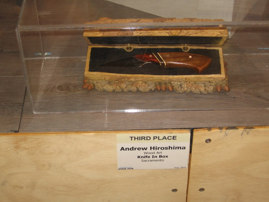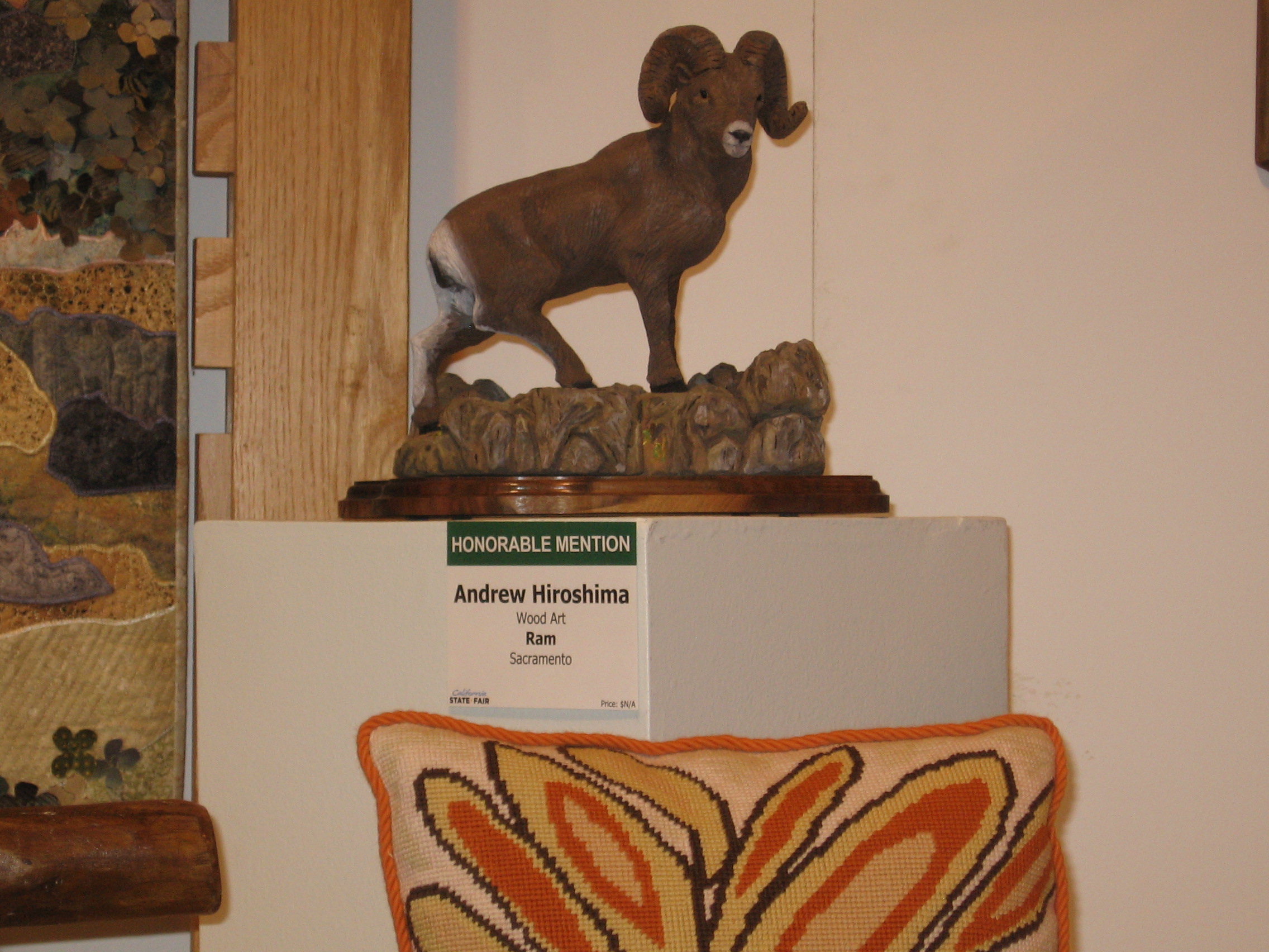 Another State Fair has come and gone. The weather was cooler and State Fair attendance was up. Only one of our members, Andy Hiroshima, entered a carving in the Creative Arts competition this year but the carving won three different awards including Best of Division. Congratulations Andy!