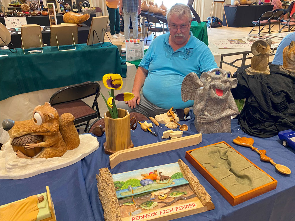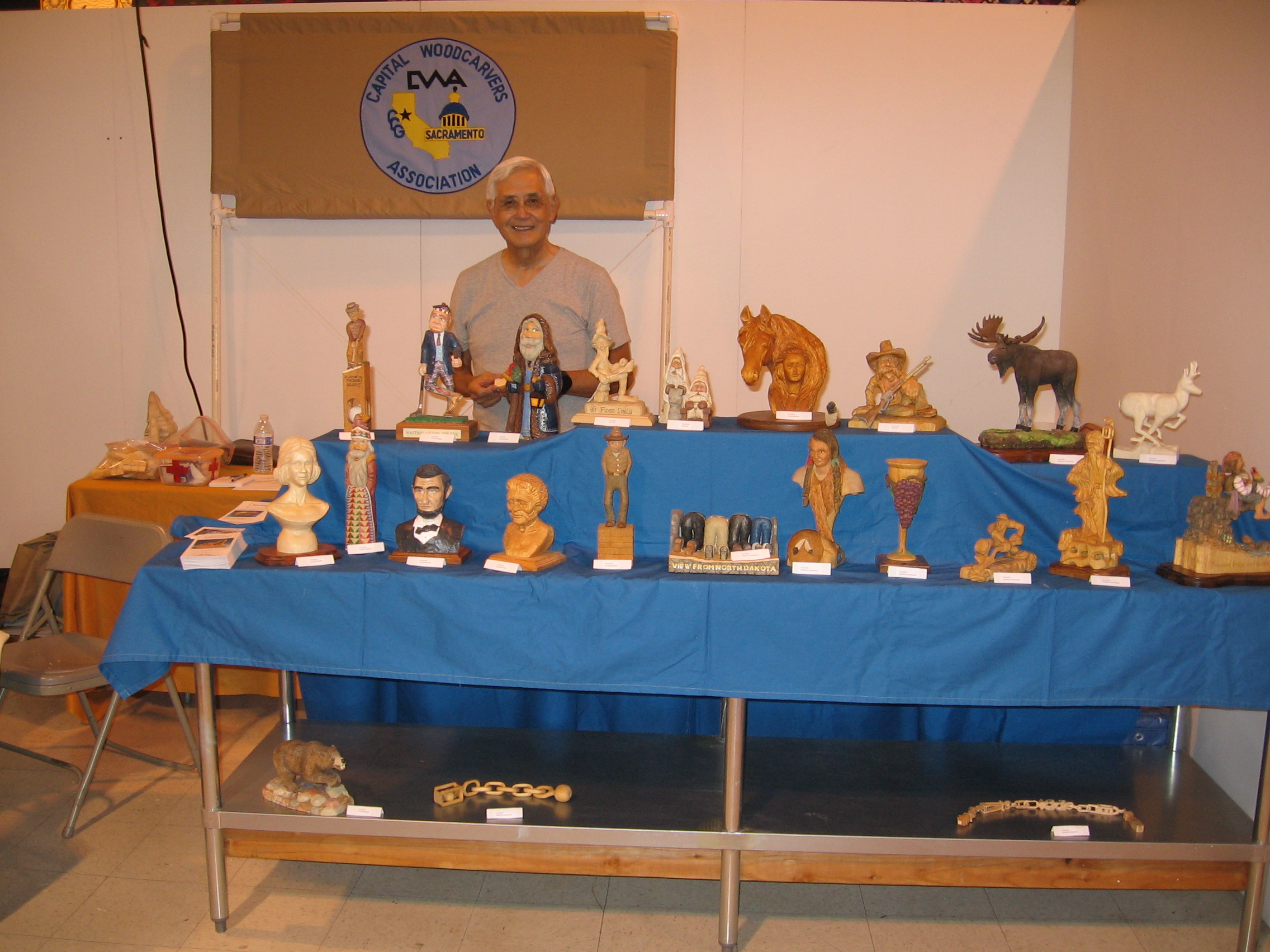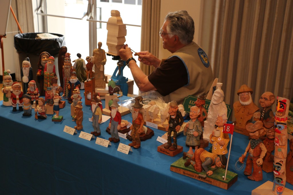 Ed Santarosa demonstrated his carving skill during the show, and displayed examples of his work.