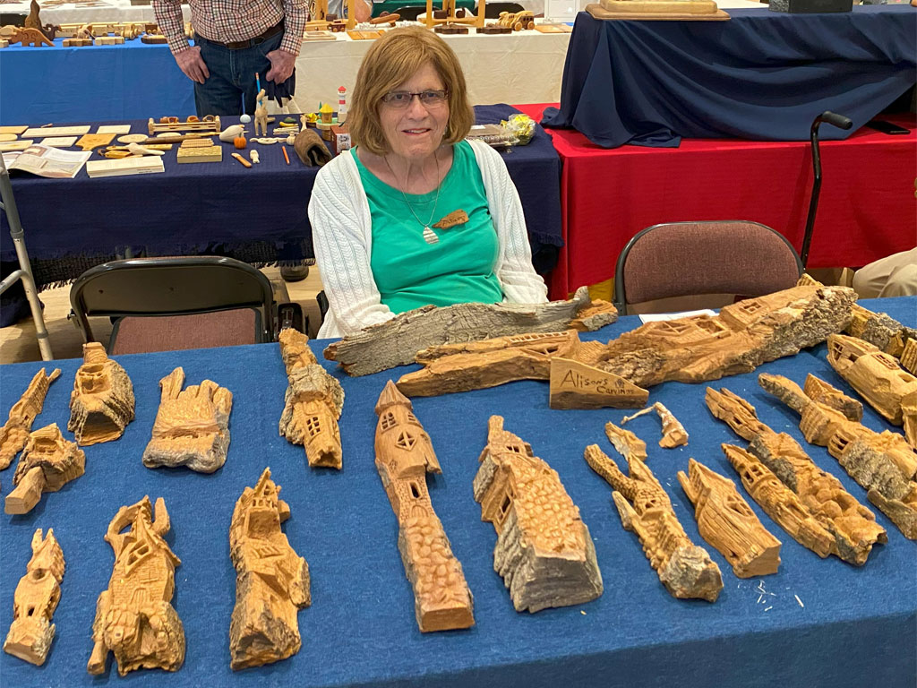 Jim Hunter displayed his wide array of whimsical houses carved from cottonwood bark carvings.