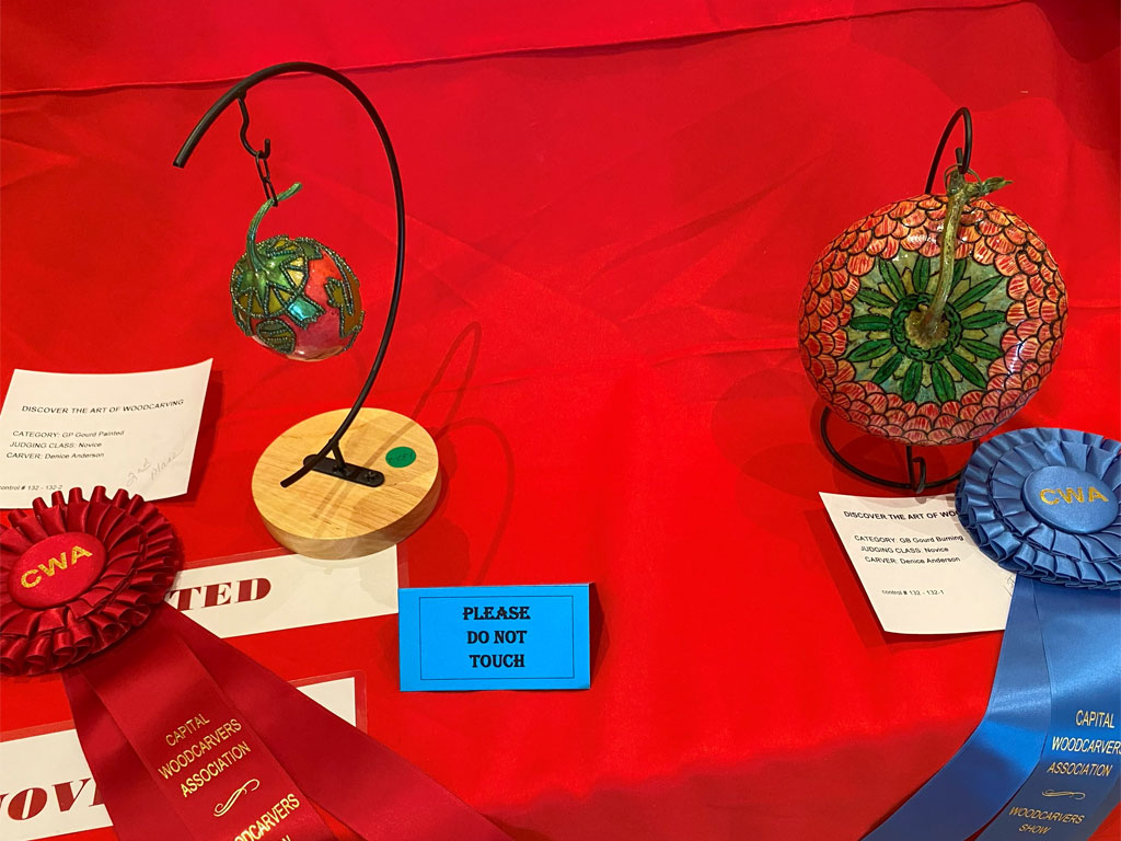 There were fifty-eight (58) wood carvings that were judged by Pat Moore. Twenty-nine (29) gourds were judged by Mary Hufft, Colleen Ballard, Sylvia Nelson, Barbara Cody, Susan De Guara, Pam Argo and Carol Des Voignes.