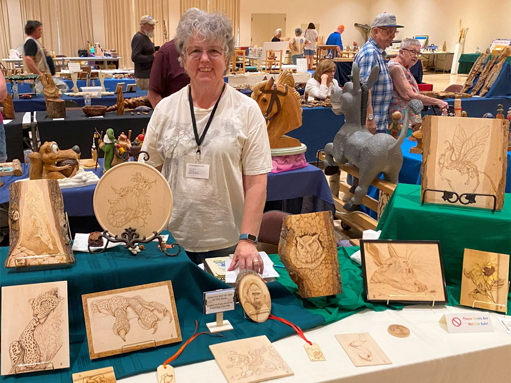 Free woodcarving and gourd art classes and demonstrations are given during the show