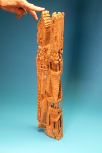“Lighthouse on a cliff” — is turned and carved from basswood. Height with the base is 6″ (15 cm). Base diameter is 3 inches (7 cm).