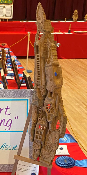 Alison Cook received Second Best of Show for a 2½ foot long cottonwood bark carving. The judge noted the level of detail and a design that featured a variety of textures, forms and shapes adding interest and variety to the piece. She also pointed out the value of having uncarved areas giving the observer a place to rest their eyes.