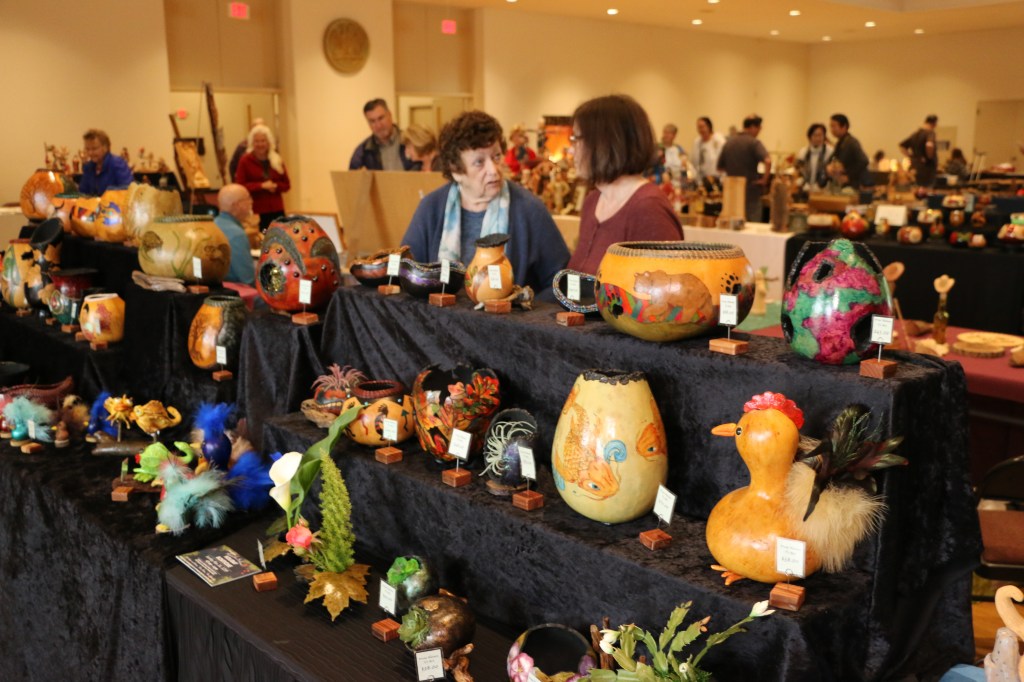 Th gourd displays attracted interested buyers as well as those discussing the intricacies of gourd art.