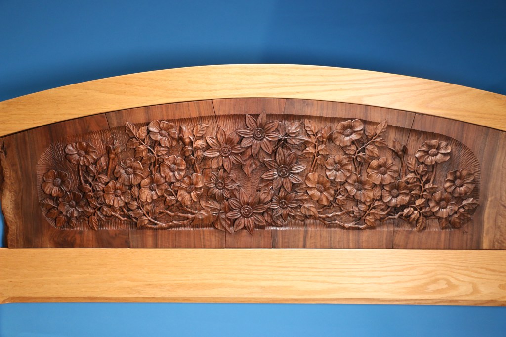 As her work became known, she took on many commissioned pieces, in Relief and Chip for private homes, businesses and churches. These include mantels, furniture, communion tables, altars, cabinets, balusters, a desk for the Legislature and furniture for the Senate Hearing Room in the State Capitol. Her decorative pieces hang in many homes in this country. Since her work was in galleries visited by international visitors her carvings are all over the world.