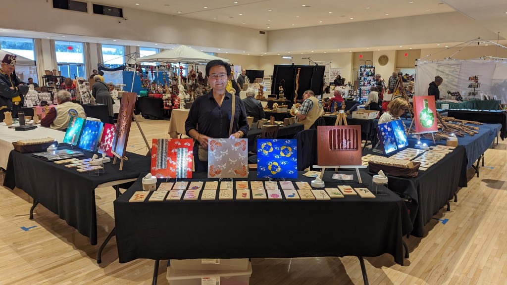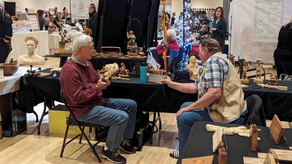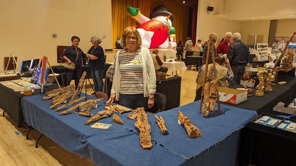 Ben Ali Shriner’s 54th Annual Craft Fair that was held on Saturday, December 2 with all proceeds going to the Ben Ali Transportation Fund. CWA had 4 – 10’x10’ booths and 12 tables for the event. Two of the booths were used by Diana Kwan and Alison Cook to sell their carvings and the other 2 booths were staffed by club volunteers to show carvings by various club members and to promote the club in general.