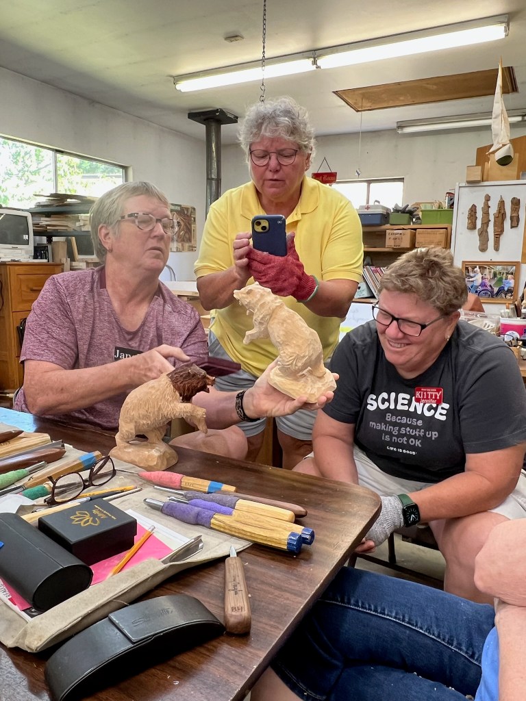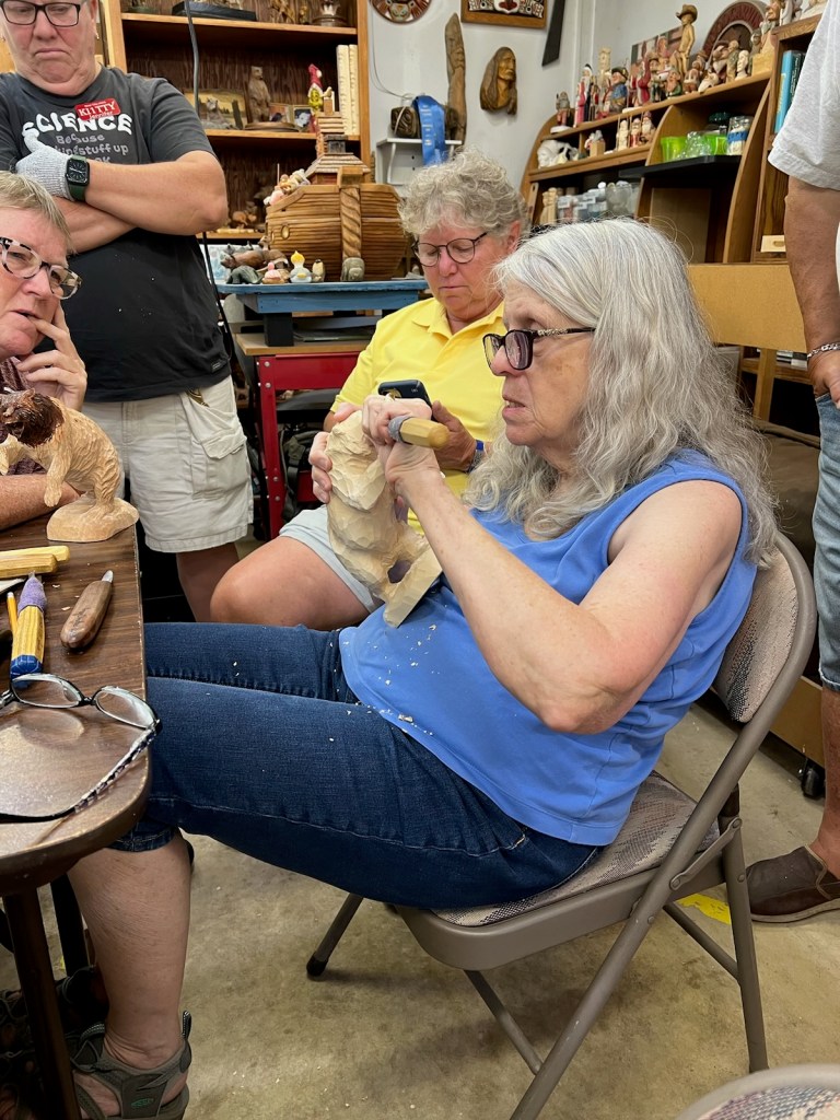 Janet Cordell presented an animal carving class sponsored by Capital Woodcarvers Association. The 3-day class met at Shirley’s shop on June 4,5 and 6, 2024. Nine beginning to advanced carvers took this class. Animal roughouts were provided. Some attendees chose to carve an articulated doll.