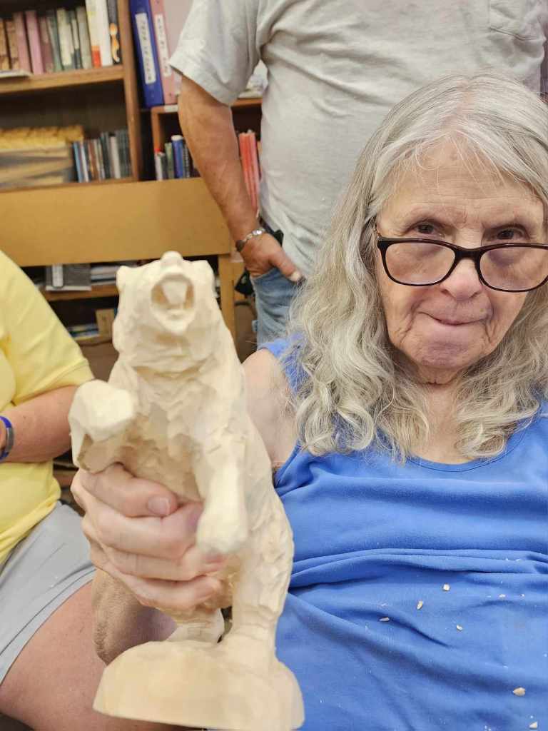 The knife was always dull, and the results were disappointing. She didn’t lose her interest in carving, however, and years later when she joined CWA, she discovered bass wood and learned how to sharpen her tools.