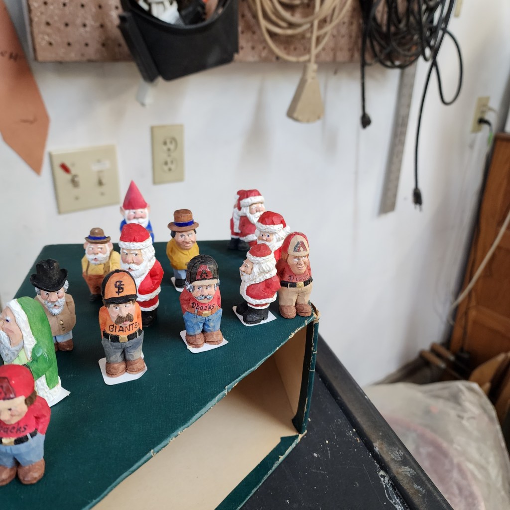 CWA also offers Saturday one day Mini Seminars conducted by club members with advanced skills in a variety of subjects, e.g., tool sharpening, wood painting, chip carving, Santas, Little People, etc. Mini Seminar attendance is not usually limited.